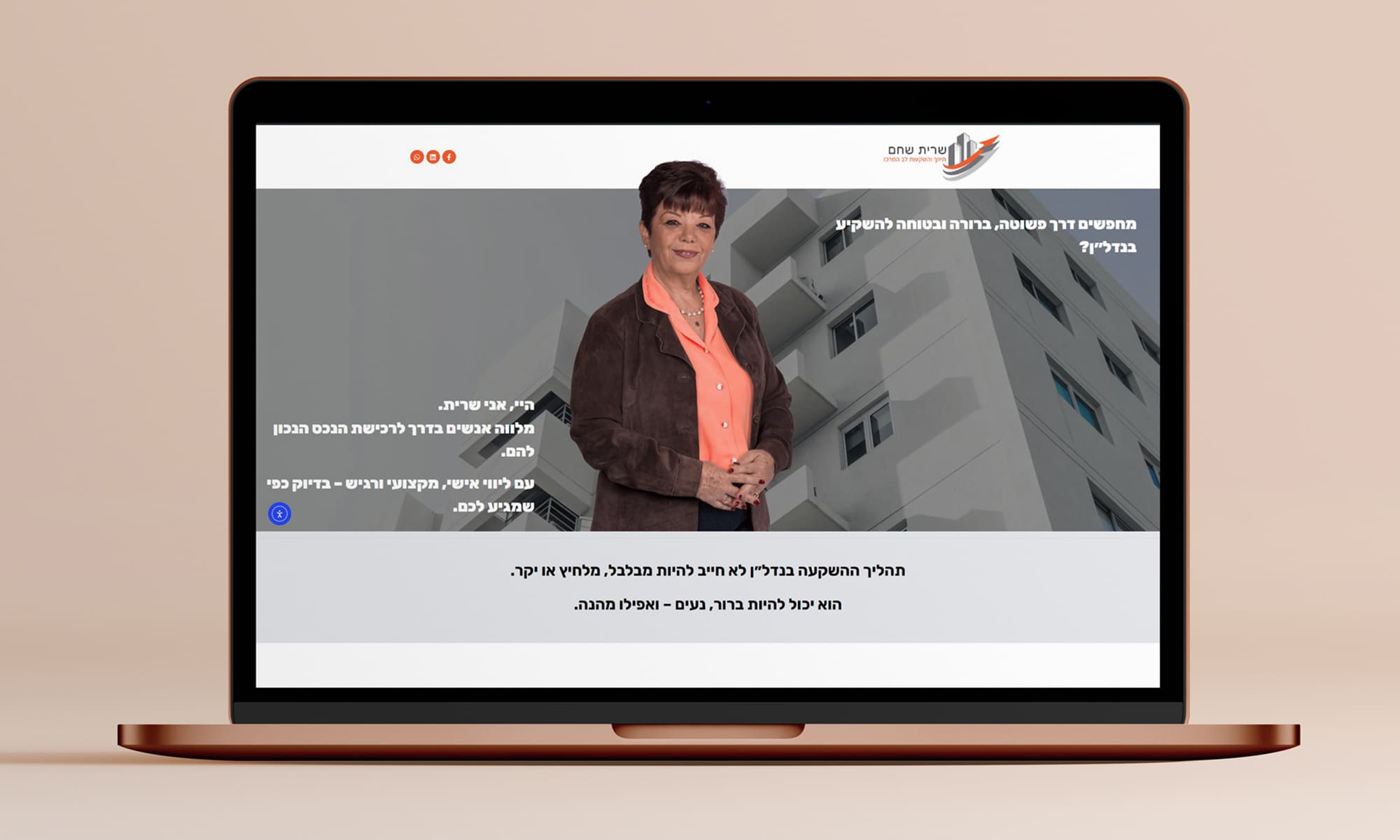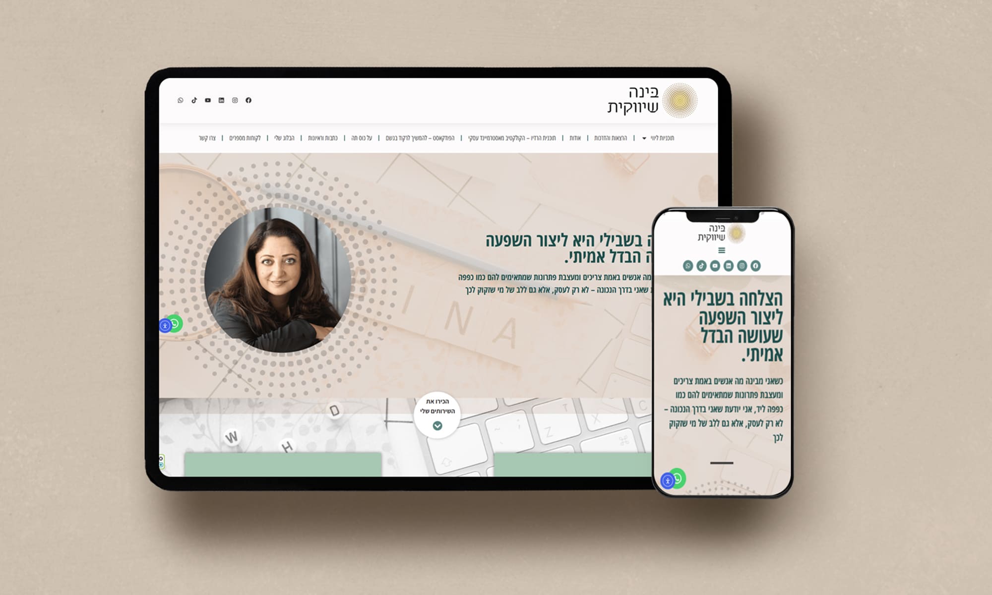"האתר שלכם הוא הלב הפועם של העסק.אני יוצרת חוויה דיגיטלית שמספרת את הסיפור שלכם,נוגעת בלקוחות ויוצרת חיבור אמיתי. יחד, נבנה בית דיגיטלי שנכון לכם.